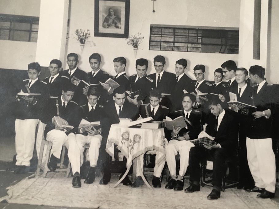 Desde la izquierda, fila inferior, Gabriel Alvarez, Luis Carlos Uribe, Leonel Tamayo, Jorge López, Arnulfo Correa y Fabio Ramírez. Fila superior, Julio César Sanín, Godofredo González, Oscar Darío Córdoba, Carlos Calle, Gabriel Palacio, Jaime Fernández, Elías Pineda *, Oscar Uribe, Jaime Díez, Alfredo Vanegas, Rodrigo Cañas, Jairo López y José Pioquinto Brand. Centro Literario Guillermo Valencia, Colegio La Salle, Envigado, Antioquia, Colombia.