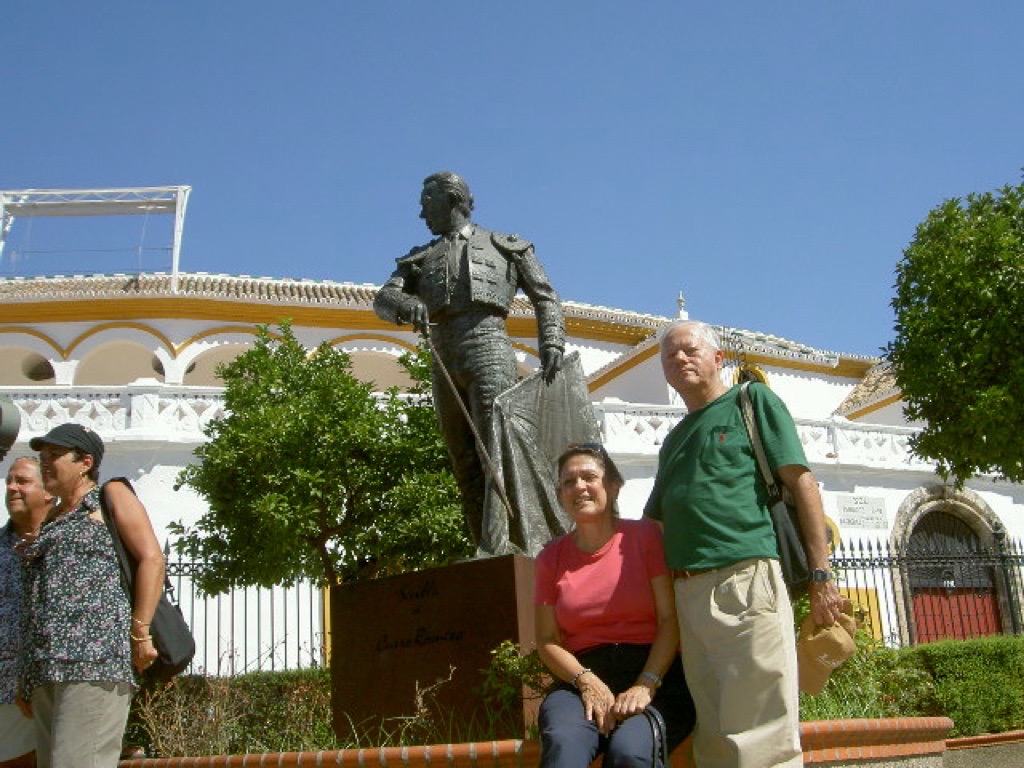 Curro Romero, Real Maestranza, Sevilla mayo 29, 2020julio 25, 2020 avanegas Beatriz Jaramillo Vélez y Alfredo Vanegas Montoya, Estatua del Torero Curro Romero en la Plaza de Toros de la Real Maestranza de Caballería de Sevilla, España.