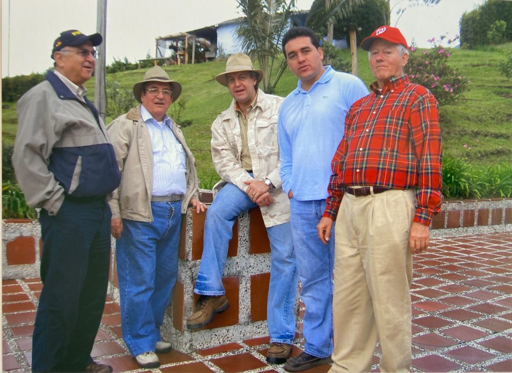 Desde la izquierda, Gabriel Garcés Garcés, Eucario Palacio Palacio, Jairo Hernán Mejía Cuartas, Felipe Rojas Toro y Alfredo Vanegas Montoya, La Pastora, La Ceja, Antioquia, Colombia.